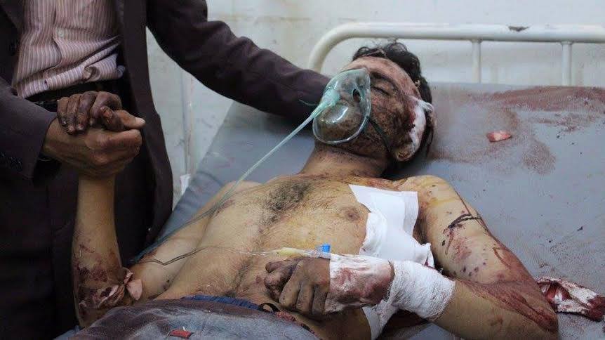 جرائم العدوان السعودي على اليمن...ملفات وثائقية (مجزرة يريم)(صور67) منذ انطلق العدوان السعودي على اليمن قبل اكثر من مائة وثمانية وستين يوما وهو يصنع الماسي كل يوم باستهدافه للمدنيين وقتله للأبرياء وتدميره للبنى التحتية ومقدرات اليمن . العدوان السعودي وضمن حربه العدوانيه الممنهجة ضد الشعب اليمني ومنشئاته التعليمية والصحية والخدمية قصف يوم الاثنين7 سبتمبر2015م حيا سكنيا بوسط مدينة يريم محافظة إب(وسط اليمن) بأربعة صواريخ نتج عنها تضرر ستة منازل واستشهاد 12 مواطنا بينهم نساء واطفال واصابة 54 بعضهم اصابتهم خطيرة. المؤتمرنت يواصل نشر الملفات الوثائقية بالصور لجرائم العدوان السعودي على اليمن فالصور تفضح هذا العدوان الهمجي الذي يدمر اليمن تحت دعاوى وذرائع مخالفة لكل الاعراف والقوانين الدولية والإنسانية. ![]() ![]() ![]() ![]() ![]() ![]() ![]() ![]() ![]() ![]() ![]() |
