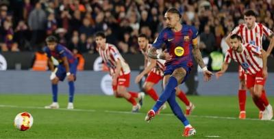 برشلونة يودّع كأس ملك أسبانيا ودّع برشلونة بطولة كأس ملك إسبانيا رغم فوزه بنتيجة 3-0 على ضيفه أتلتيكو مدريد في إياب نصف النهائي، يوم الثلاثاء، على ملعب سبوتيفاي كامب نو، ليصبح مجموع المباراتين 4-3 للفريق العاصمي. وكان برشلونة قد خسر برباعية نظيفة في لقاء الذهاب على ملعب أتلتيكو مدريد. افتتح برشلونة التسجيل عبر لاعبه مارك بيرنال عند الدقيقة 29، ثم ضاعف البرازيلي رافينيا النتيجة من ركلة جزاء عند الدقيقة الخامسة من الوقت بدل الضائع للشوط الأول. وعاد بيرنال ليضيف الهدف الثالث عند الدقيقة 72، لكن فريقه لم يتمكن من تعديل نتيجة مباراة الذهاب بتسجيل الهدف الرابع. وينتظر أتلتيكو في النهائي الفائز من ريال سوسييداد وأتلتيك بلباو، إذ حقق الأول الفوز 1-0 ذهاباً خارج ملعبه قبل أن يلتقيا يوم الأربعاء في لقاء الإياب. |