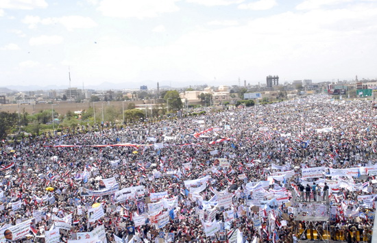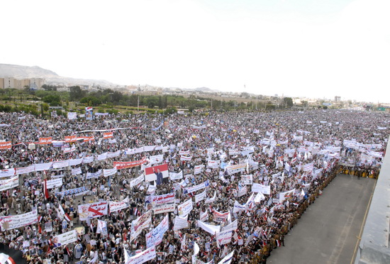جمعة الشرعية الدستورية:صوت الشعب اليمني جمعة الشرعية الدستورية :ملايين من أبناء اليمن يسطرون صورة رائعة من صور التمسك بالشرعية الدستورية ورفض الانقلاب عليها ...حشود ملاينيية جاءت إلى العاصمة صنعاء لأداء صلاة جمعة الشرعية الدستورية وتقديم مشهد جديد من مشاهد الرفض للانقلابات والفوضى والتخريب والعنف والتطرف والإرهاب ...الديمقراطية هي عنوان الوصول إلى السلطة وليس الانقلابات..هتفوا ككل مرة بصوت واحد :نعم للشرعية الدستورية ..نعم لعلي عبدالله صالح . ![]() ![]() ![]() ![]() ![]() ![]() ![]() ![]() ![]() ![]() ![]() ![]() ![]() ![]() ![]() |