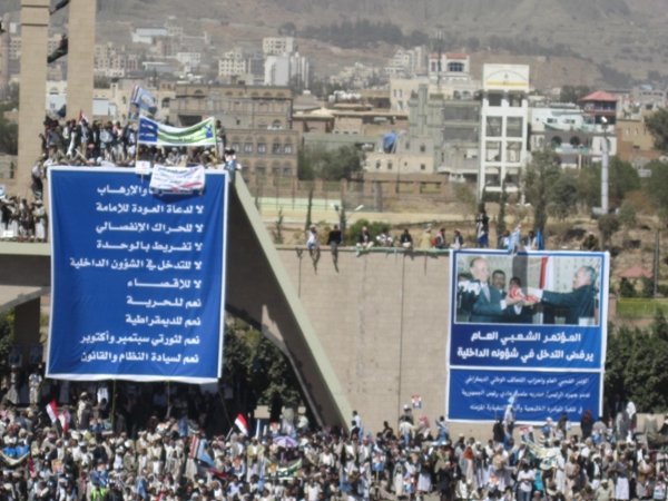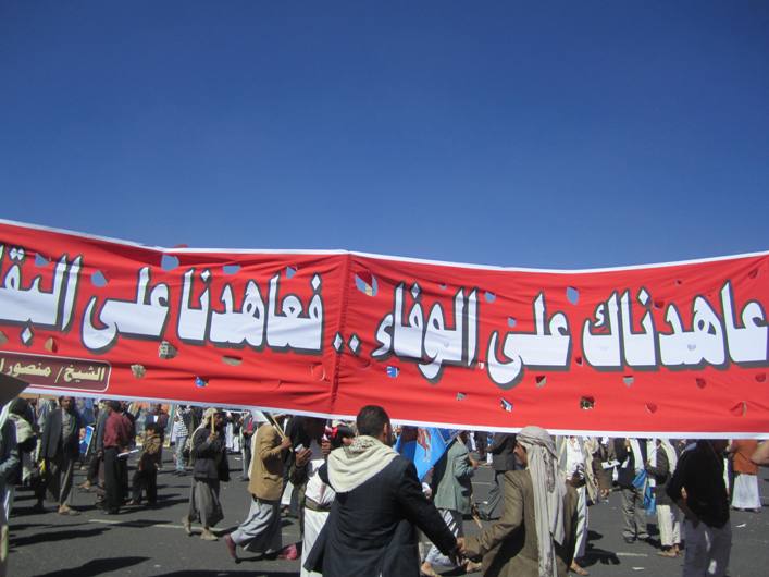 المؤتمرنت - ياشمس قولي للقمر..(مختارات من مهرجان الوفاء) شهدت العاصمة صنعاء صباح الأربعاء الماضي المهرجان الجماهيري المليوني الذي نظمه المؤتمر الشعبي العام وحلفائه بميدان السبعين بالعاصمة صنعاء احتفاء بالذكرى الأولى للتداول السلمي للسلطة في اليمن والعالم العربي . (عدسة المؤتمرنت) رصدت لكم مشاهد احتفائية متفرقة على هامش الفعالية